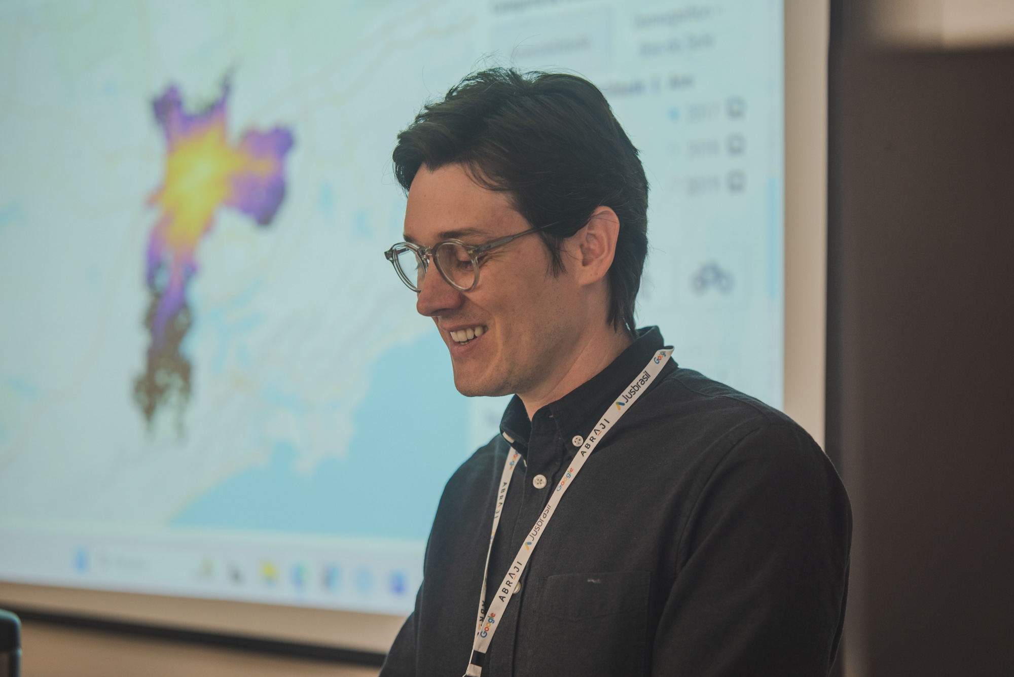 “A quick summary: we have over 30 people taking place in our sessions and had great feedback. And I was really happy to see that people who took the introductory sessions last year (the ones that take place in the morning) came back this year in the afternoon to catch Rafael’s session. One of them is an investigative journalist who said that, after learning R last year, he took some more courses online and began practicing, and is now using R to produce news stories and interested in learning more and more!”