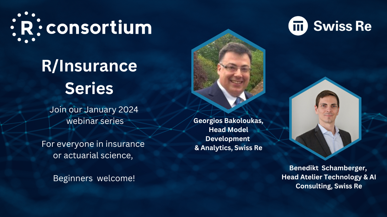 These four webinars focused on insurance and actuarial science. The webinars were led by two experts in the field, Georgios Bakoloukas, Head Model Development and Analytics at Swiss Re, and Benedikt Schamberger, Head Atelier Technology & AI Consulting at Swiss Re.